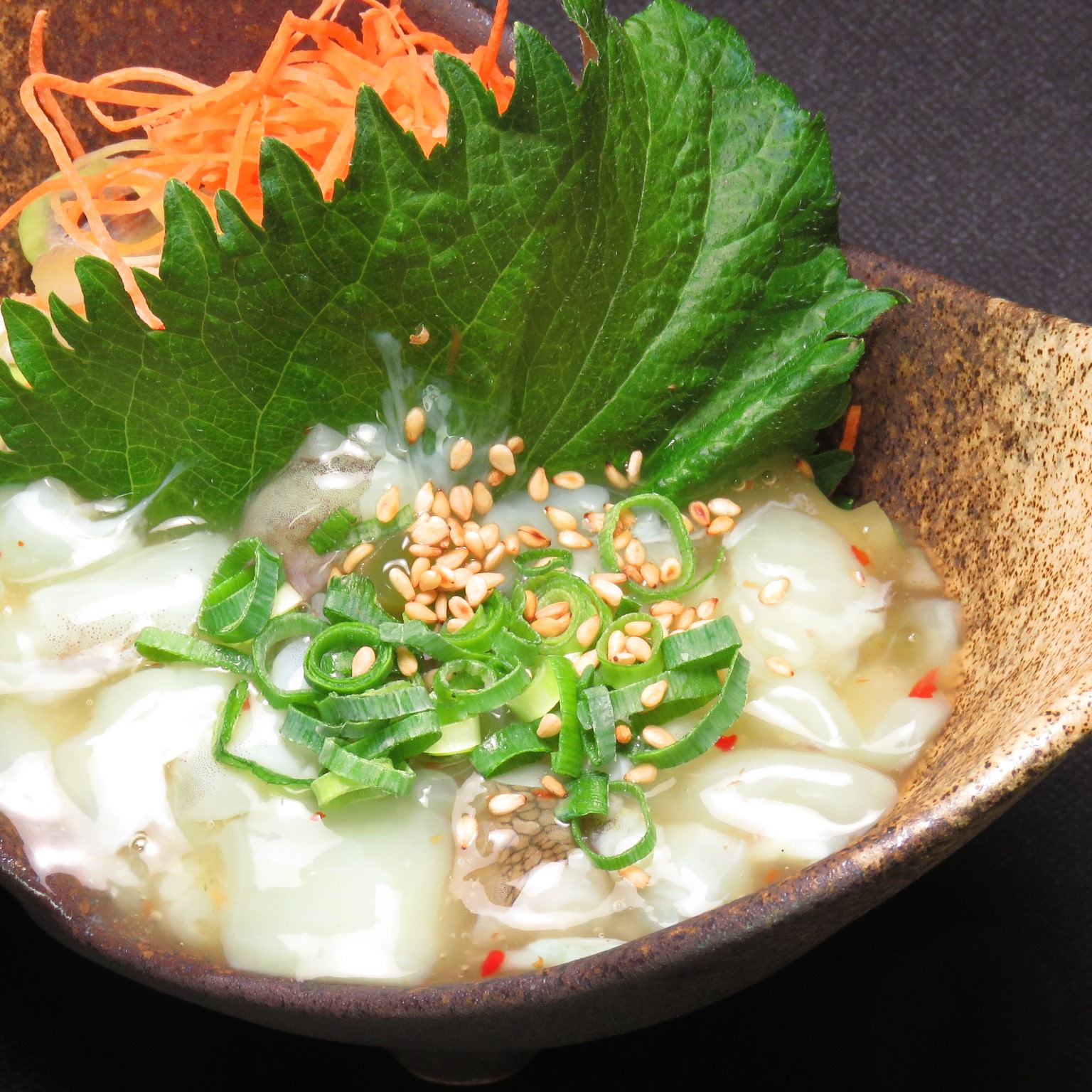 博多の定番 【名物胡麻カンパチ】 新鮮カンパチに特製胡麻タレを和えて